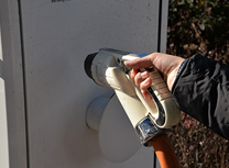 將有充電樁標(biāo)志的一頭插入交流慢充樁內(nèi)